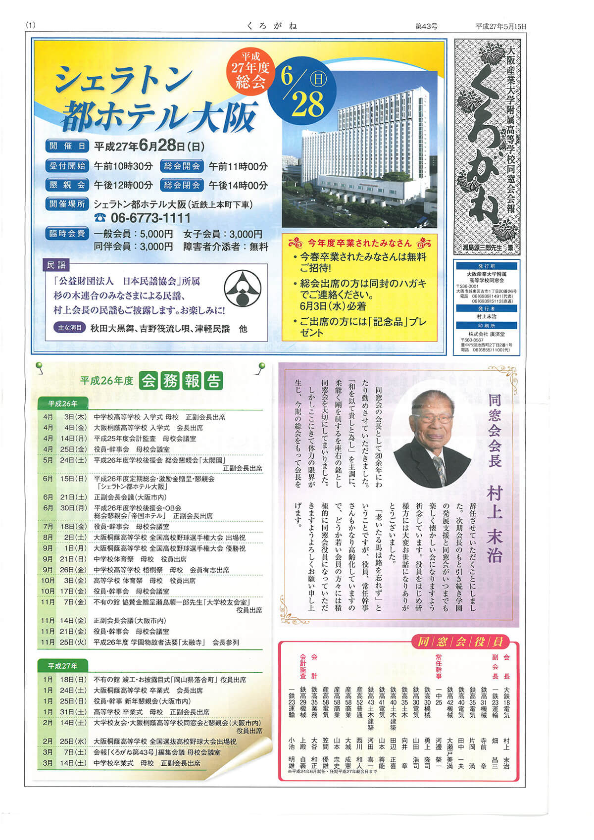 今号も卒業生たちメッセージや活躍をはじめ、今の大阪産業大学付属高等学校生についてなども情報盛りだくさんの同窓会機関新聞「くろがね」が発行されました。同窓会総会の様子なども掲載しているので、ぜひ以下よりご覧ください。